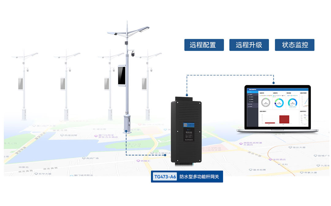 5G智慧燈桿網(wǎng)關(guān)TG473-A6,工業(yè)級設(shè)計,整機防護(hù)等級IP65,引出式子母防水接口防護(hù)等級IP68,防止噴射水、大浪水、飛濺水入侵,防水性能更佳,無懼室外惡劣環(huán)境應(yīng)用。TG473-A6下5G智慧路燈桿綜合桿具備燈控照明、視頻監(jiān)控、環(huán)境氣象監(jiān)測、地面積水、一鍵報警、led、IP音柱等功能,配合云管理平臺實現(xiàn)智慧桿遠(yuǎn)程智能化管控。
