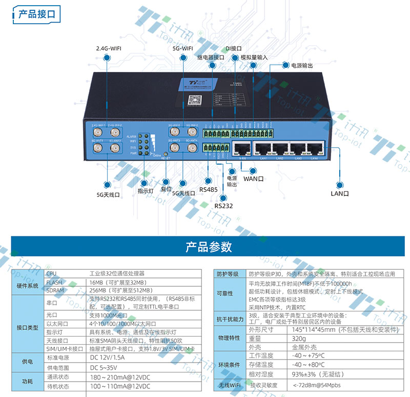 5G/4G智能邊緣網(wǎng)關(guān)TG463接口參數(shù)