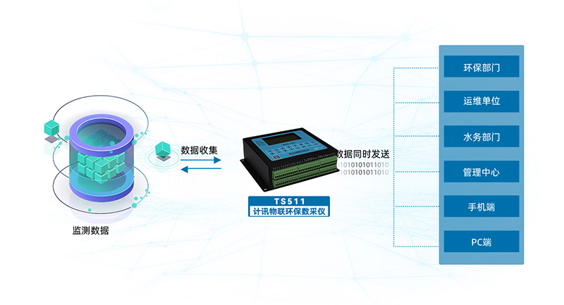 5G/4G環(huán)保數(shù)采儀是智慧環(huán)保系統(tǒng)數(shù)據(jù)傳輸樞紐,計(jì)訊物聯(lián)TS511環(huán)保數(shù)采儀在系統(tǒng)種起到數(shù)據(jù)采集,數(shù)據(jù)傳輸、協(xié)議轉(zhuǎn)換、設(shè)備監(jiān)管、聯(lián)接上云、遠(yuǎn)程服務(wù)等,并通過計(jì)訊物聯(lián)智慧環(huán)保管理云平臺(tái),實(shí)現(xiàn)遠(yuǎn)程部署、遠(yuǎn)程運(yùn)維等操作。