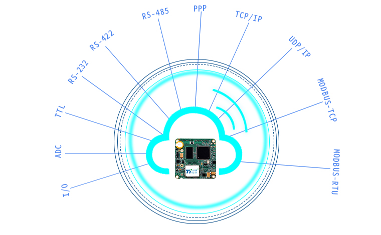 支持I/O、ADC、TTL/RS-232/RS-485多種接口選擇(可定制TTL電平串口),兼容所有串口下位機(jī);支持串口AT協(xié)議,在運(yùn)行過程中切換到AT狀態(tài),進(jìn)行參數(shù)配置、重啟控制式;兩路模擬量、三路開關(guān)量設(shè)計(jì),定制脈沖輸出、脈沖計(jì)數(shù)和模擬量輸入功能;內(nèi)嵌PPP、TCP/IP、UDP/IP、MODBUS-TCP、 MODBUS-RTU等多種協(xié)議,同時(shí)兼容廠家私有協(xié)議。
