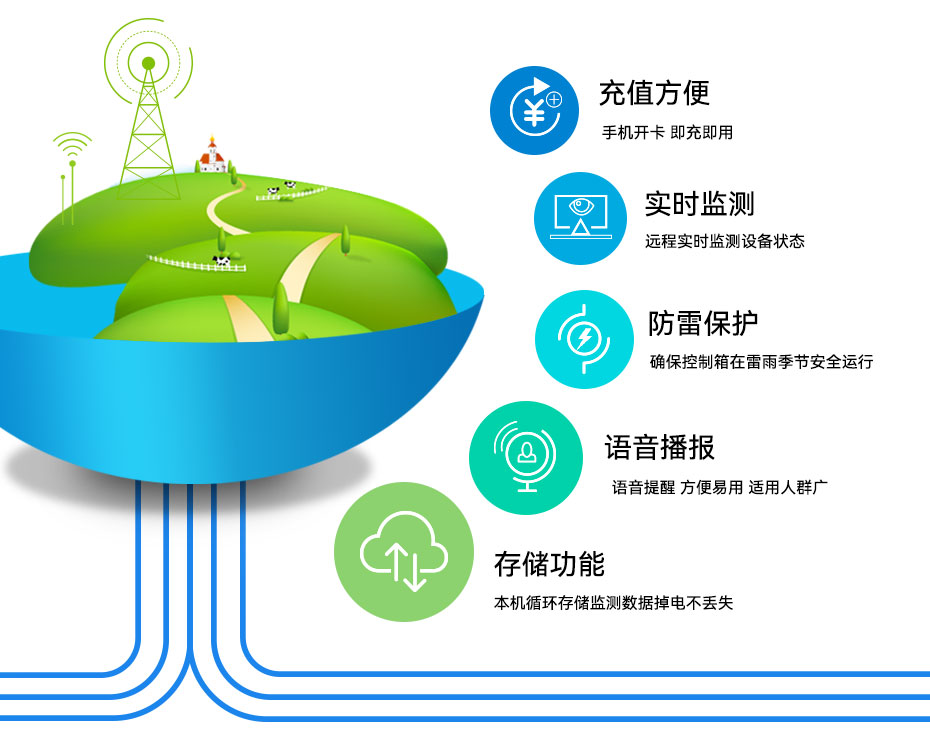 NFC技術(shù):無線讀卡、防復(fù)制、防消磁、防水防潮;充值方便:手機(jī)開卡 即充即用;存儲(chǔ)功能:本機(jī)循環(huán)存儲(chǔ)監(jiān)測(cè)數(shù)據(jù),掉電不丟失;語音播報(bào):語音提醒 方便易用 適用人群廣;實(shí)時(shí)監(jiān)測(cè):遠(yuǎn)程實(shí)時(shí)監(jiān)測(cè)設(shè)備狀態(tài);防雷保護(hù):確??刂葡湓诶子昙竟?jié)安全運(yùn)行。