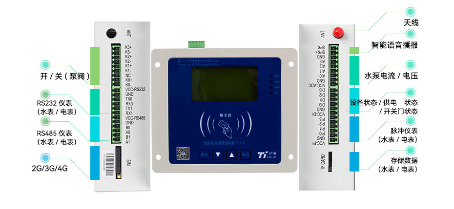 TJ710系列智能機(jī)井控制器是新型智能機(jī)控制系統(tǒng)的核心設(shè)備,它可以嵌入到智能機(jī)井柜、智能機(jī)房以及原有啟動(dòng)柜,對(duì)機(jī)井進(jìn)行監(jiān)控,實(shí)現(xiàn)了用水需刷卡、遠(yuǎn)程監(jiān)控等功能。