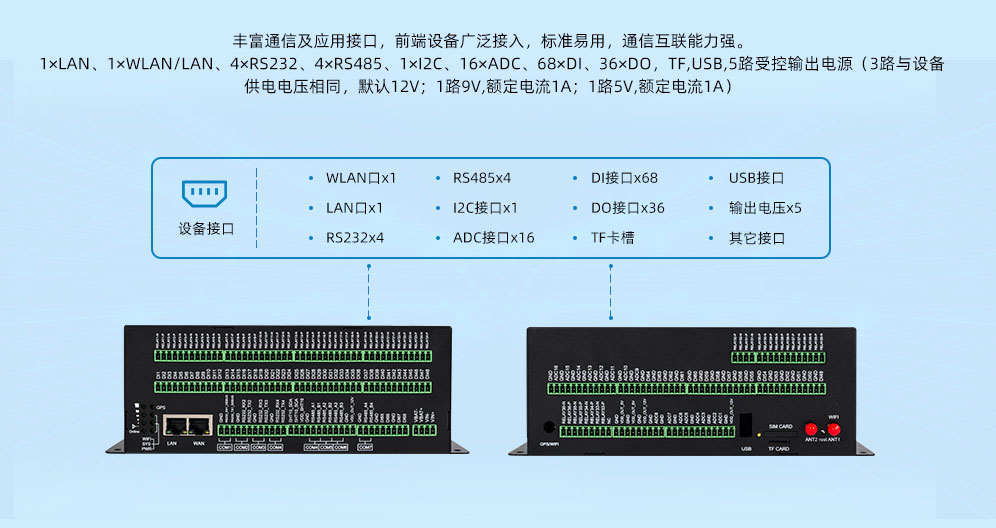 5路受控輸出電源(3路輸出電壓值與設(shè)備供電電壓相同,默認(rèn)12V;1路輸出9V,單路額定輸出電流1A;1路輸出5V,單路額定輸出電流1A;內(nèi)置過(guò)流保護(hù)) |