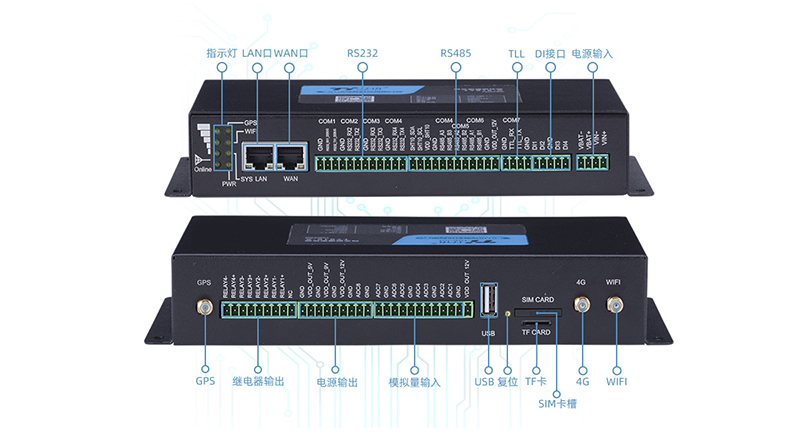 2、支持GPRS/4G無線蜂窩網(wǎng)絡(luò)、短信、RS232/RS485,可選NB-IOT、北斗等通信。