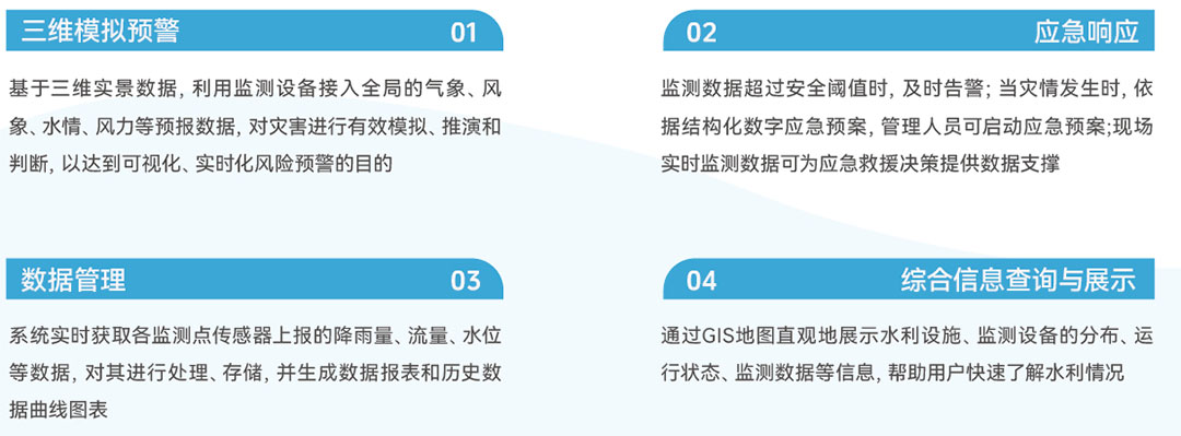 計(jì)訊物聯(lián)基于物聯(lián)網(wǎng)技術(shù)構(gòu)建防汛應(yīng)急系統(tǒng),通過傳感器、數(shù)據(jù)采集終端、遙測終端機(jī)等實(shí)時(shí)采集數(shù)據(jù)無線上云,實(shí)現(xiàn)對水位、降雨量、流量等關(guān)鍵數(shù)據(jù)的監(jiān)測和預(yù)警,開發(fā)與集成數(shù)據(jù)監(jiān)測、汛情預(yù)警、方案調(diào)度等功能,為防汛減災(zāi)提供信息化、數(shù)字化服務(wù),旨在協(xié)助監(jiān)管人員對洪澇災(zāi)害的監(jiān)測、預(yù)警和應(yīng)急響應(yīng)能力,減少汛情帶來的災(zāi)害損失。